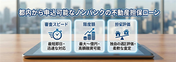銀行での借り入れが難しい場合や、よりスピーディーな対応を求める場合には、ノンバンクの不動産担保ローンも選択肢となります。